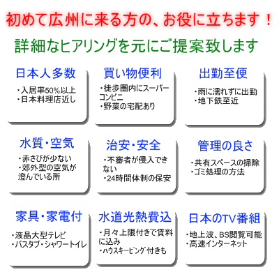 弊社では初めて広州にいらっしゃる、初めて長期でお住まいになる方に、